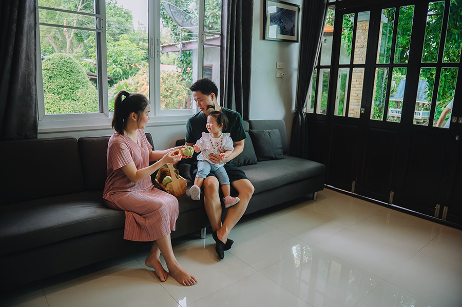ห้องรับแขกกว้างขวาง สามารถทำกิจกรรมร่วมกันกับแก๊งค์เพื่อนหรือครอบครัวได้ แถมยังได้ชมวิวแม่น้ำแบบชิลล์ๆ