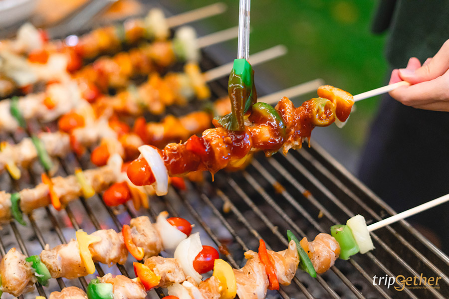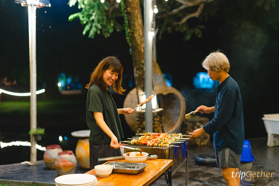 มาเที่ยวกับเพื่อนทั้งที ห้ามพลาดบาร์บีคิวปิ้งย่างเด็ดขาด โดยทางที่พักเสิร์ฟเป็นไม้บาร์บีคิวไก่ชิ้นใหญ่ๆ เนื้อไก่เต็มคำสลับด้วยสับปะรด หอม มะเขือเทศ พริกหยวก นำไปทาด้วยเนย ต่อด้วยราดซอสบาร์บีคิวฉ่ำๆ รอจนปิ้งสุกได้ที่ก็เตรียมขึ้นโต๊ะได้เลย บอกเลยว่าปิ้งย่างที่ว่าอร่อยแล้วแต่ถ้าได้มากับเพื่อน ได้ใช้เวลาด้วยกัน ถือว่าเป็นมื้อเย็นที่อบอุ่นและมีความสุขมากๆ
