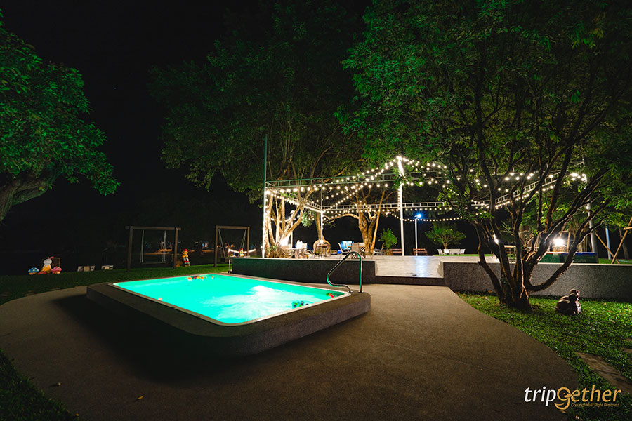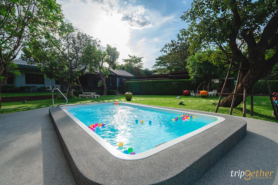 และมาพูลวิลล่าทั้งทีก็ต้องเล่นน้ำในสระว่ายน้ำสักหน่อย สระว่ายน้ำนี้เป็นแบบกลางแจ้งและตั้งอยู่บริเวณกลางที่พัก แถมสระว่ายน้ำยังเป็นระบบสปาจากุชชี่ จะเล่นน้ำสนุกๆ หรือแช่น้ำชิลล์ๆ มองวิวภูเขาและน้ำตกก็ดีเหมือนกัน อีกทั้งทางที่พักก็มีพร็อพเตรียมไว้ให้พร้อม ทั้งลูกบอล ห่วงยาง บอกเลยว่าต้องชวนชาวแก๊งค์มาโดดลงสระ เล่นน้ำกันแล้ว