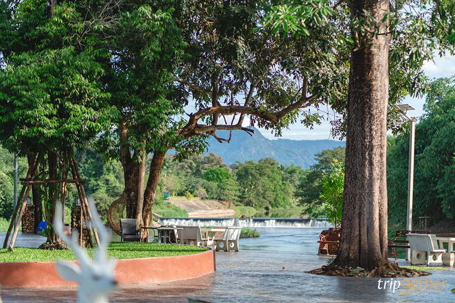 มาเดินดูบรรยากาศรอบๆ กันบ้าง บ้านสาริกาวอเตอร์ฟอลวิวตั้งอยู่ท่ามกลางความเขียวขจีของต้นไม้ใบหญ้า บวกกับมีลำธารใหญ่ไหลผ่านหน้าที่พัก ทำให้มีลมสบายพัดเข้ามาตลอด อีกทั้งเมื่อมองออกไปจากที่พักก็จะเห็นน้ำตกไหลลงมาเป็นสาย เรียกได้ว่ามานอนชาร์จพลังกลางธรรมชาติจริงๆ ส่วนบรรยากาศก็สบายๆ ให้ฟีลเหมือนมานอนค้างบ้านญาติ อีกทั้งยังมีพี่ๆ แม่บ้านที่คอยอำนวยความสะดวกและดูแลตลอดการเข้าพัก