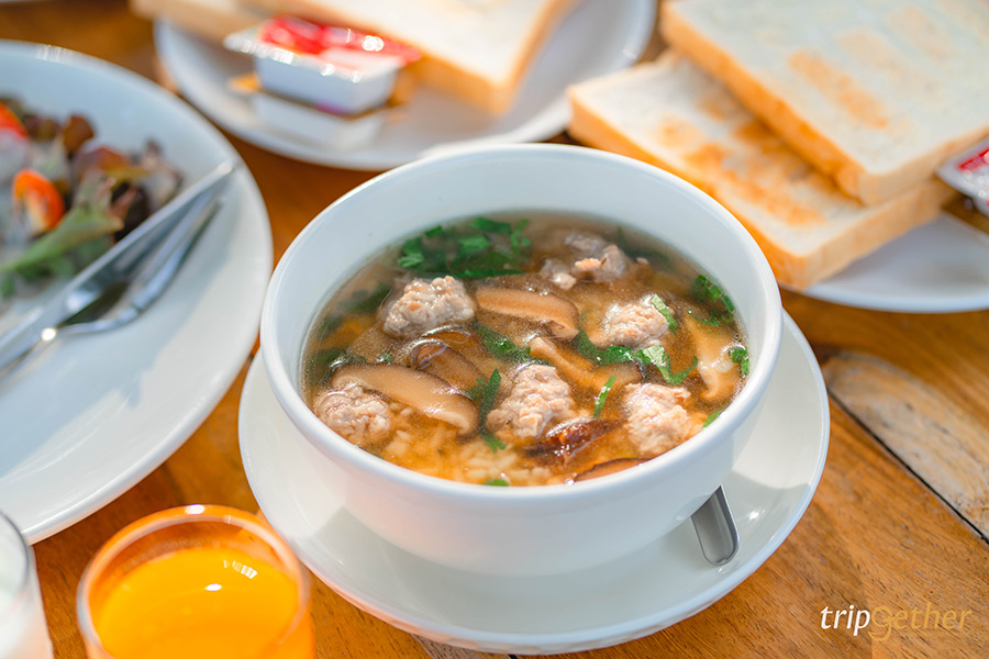 ข้าวต้มอุ่นท้องร้อนๆ ยามเช้า รสชาติกลมกล่อมกับหมูก้อนโตๆ เพิ่มความหอมอ่อนๆ ด้วยเห็ดหอม ซดน้ำซุปโล่งคอ เป็นเมนูอาหารที่เหมาะกับมื้อเช้าจริงๆ