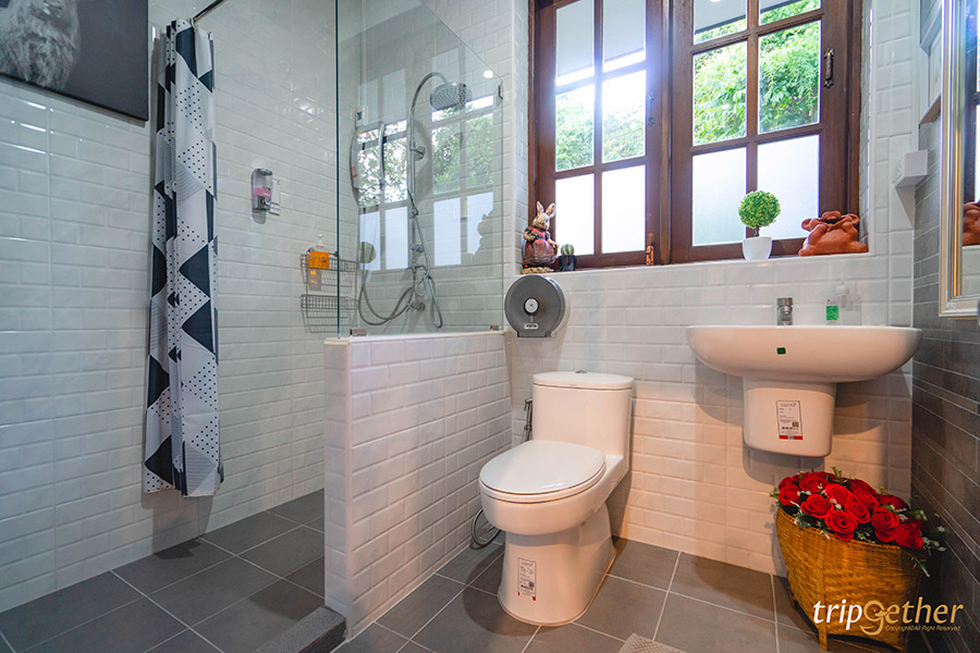 สิ่งอำนวยความสะดวกในห้องน้ำก็มีเพียบพร้อม อาบน้ำได้แบบสบายๆ