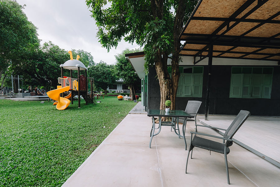 ข้างตัวบ้านจะเป็นโซนนั่งเล่นหรือลานเอกประสงค์ ตรงนี้จะมาจัดกิจกรรมหรือนั่งล้อมวงกินข้าวก็ได้