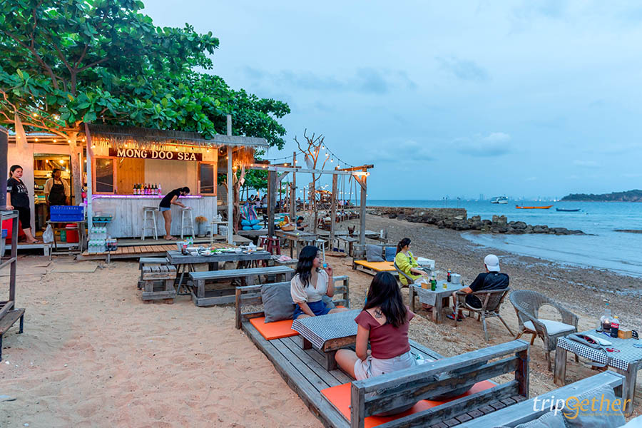 Mong Doo Sea ร้านอาหารริมทะเล บรรยากาศชิลล์ๆ มาพร้อมที่นั่งแบบ Outdoor บนชายหาด ซึ่งมีที่นั่งให้เลือกหลากหลายแบบ ทุกที่นั่งสามารถมองเห็นวิวทะเลได้อย่างเต็มที่แบบไม่มีอะไรมาบดบัง