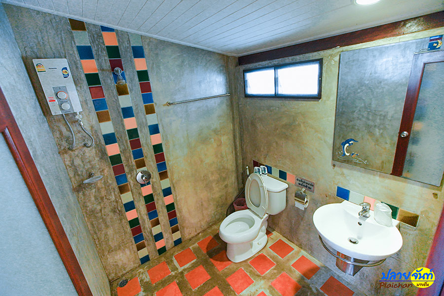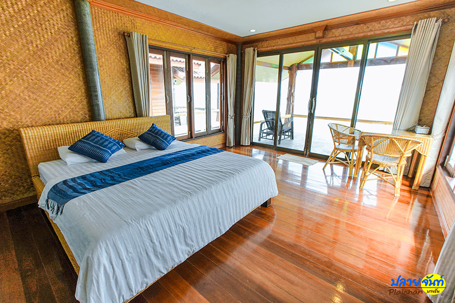 บ้านหลังต่อมาคือสไตล์บ้านเดี่ยว เป็นบ้านพักที่แยกตัวออกจากหลังอื่นๆ บ้านหลังนี้สามารถพักได้ 2 คน มีระเบียงกว้างยื่นออกไปในทะเล สามารถนั่งเล่นได้แบบชิลล์ๆ เลย ภายในห้องพักมีที่นอน ทีวี ตู้เย็น แอร์ เครื่องทำน้ำอุ่น และห้องน้ำส่วนตัว สามารถมองวิวได้จากที่นอนเลยเพราะประตูและหน้าต่างเป็นกระจกใสบานใหญ่บอกเลยบรรยากาศชิลล์สุดๆ ส่วนใครที่ชอบตกปลาสามารถแจ้งทางที่พักได้เลยเพราะโซนของบ้านเดี่ยวจะมีทั้งโซนที่ตกปลาได้และตกปลาไม่ได้