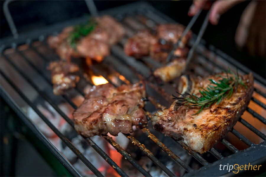 เซ็ตหมูย่างว้าวมากกกก ย่างหมูท่ามกลางอากาศเย็นๆ กินกับน้ำจิ้มรสเด็ด