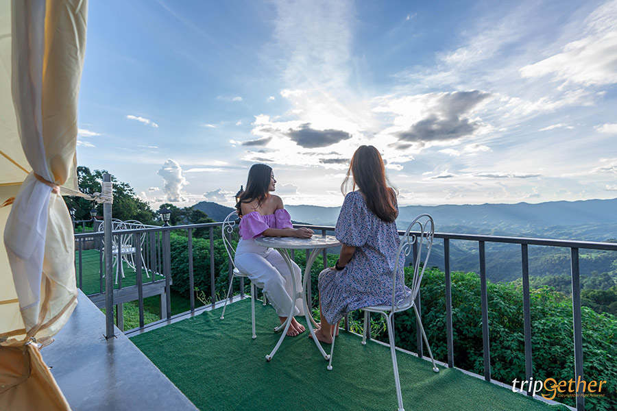 สำหรับมื้อเช้าทางที่พักพร้อมเสิร์ฟตั้งแต่ 07.00 – 09.00 น. ซึ่งเป็นช่วงเวลาที่บรรยากาศแสงกำลังดีและวิวกำลังสวยเลย