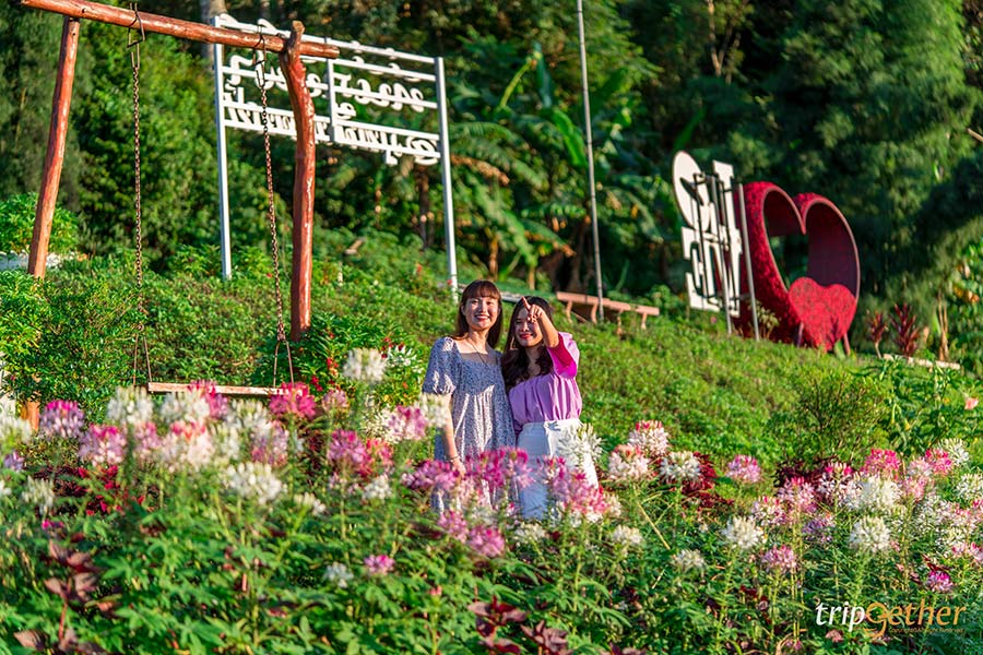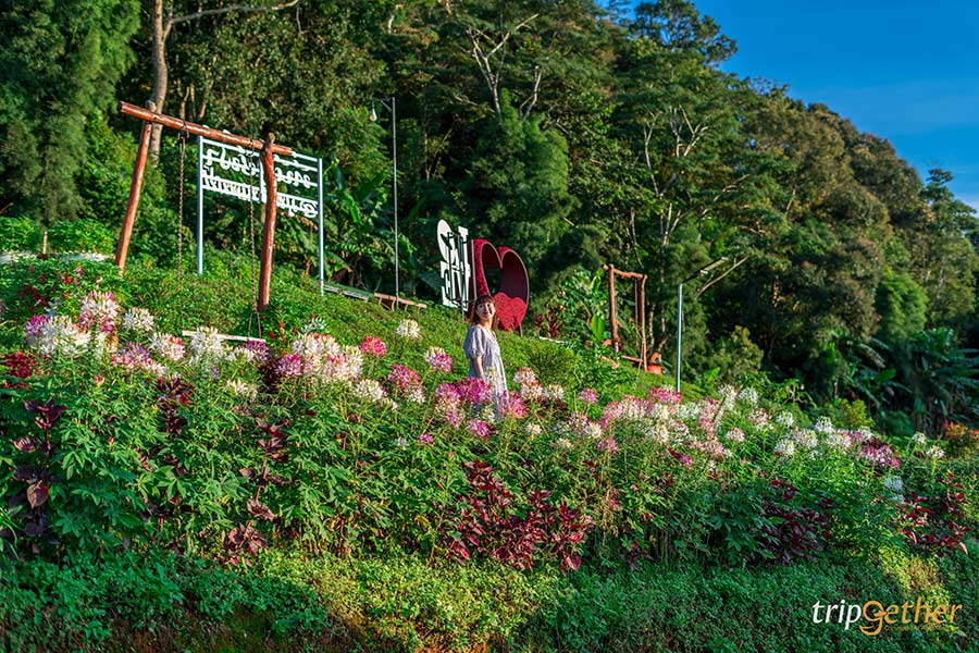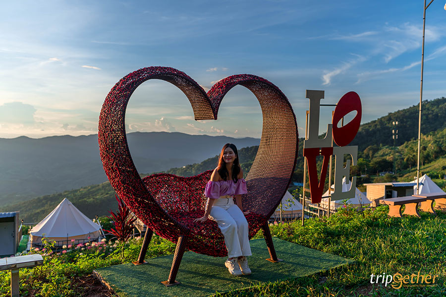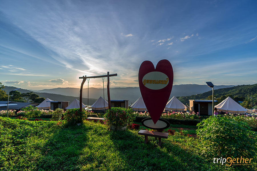 หลังจากเดินดูห้องพักกันเสร็จแล้วก็มาเดินเล่นรอบๆ กันต่อ ภายในที่พักมีพื้นที่กว่า 13 ไร่ นอกจากโซนเต็นท์ซึ่งเป็นห้องพักแล้วยังมีมุมถ่ายรูปสวยๆ และทางเดินชิลล์ๆ มากมาย บรรยากาศที่พักมีความร่มรื่นของแมกไม้ต่างๆ และยังมีดอกไม้น้อยๆ น่ารักที่ช่วยเพิ่มสีสัน ดูมีชีวิตชีวา แถมถ่ายรูปออกมาก็ดูสดใสท่ามกลางธรรมชาติมาก อีกทั้งยังมีจุดถ่ายรูปต่างๆ ไม่ว่าจะเป็นชิงช้า ซุ้มรังนกหัวใจ ป้ายเช็คอิน บอกเลยว่าได้รูปกลับไปอัปลงโซเชียลแน่ๆ