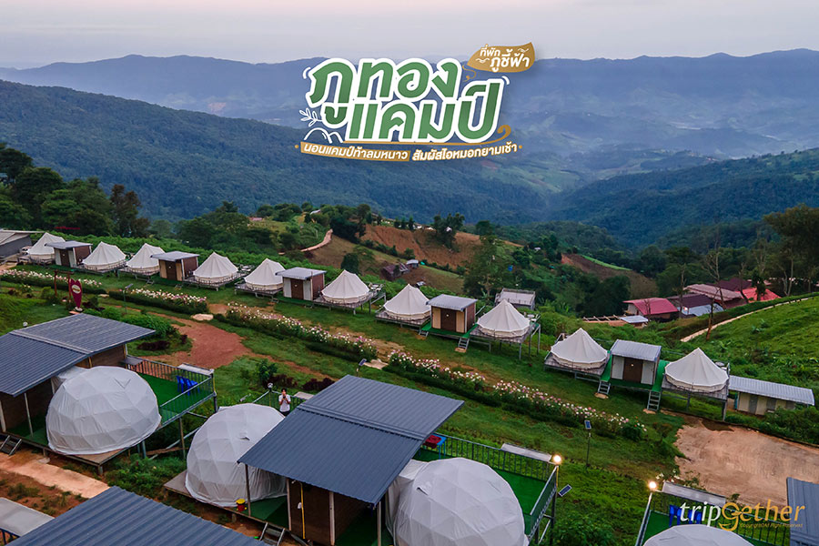 ใครที่กำลังมาเที่ยวภูชี้ฟ้าและมองหาที่พักบรรยากาศสบายๆ มีความเงียบสงบ ภูทองแคมป์ ถือว่าตอบโจทย์การพักผ่อนในวันชิลล์ๆ ได้นอนเต็นท์ใกล้ชิดธรรมชาติ พร้อมกับวิวของหุบเขาและเนินเขาสลับซับซ้อนแบบพาโนรามา อีกทั้งตัวที่พักยังอยู่บนเนินสูงสามารถสัมผัสอากาศเย็นและสายหมอกในยามเช้า แถมอากาศยังเย็นสบายตลอดทั้งปี เหมาะกับการมานอนแคมป์ปิ้งกับเพื่อน ชวนคนรักมานอนกอดอบอุ่น หรือพาครอบครัวมานอนสบายๆ กันสักคืนมาก