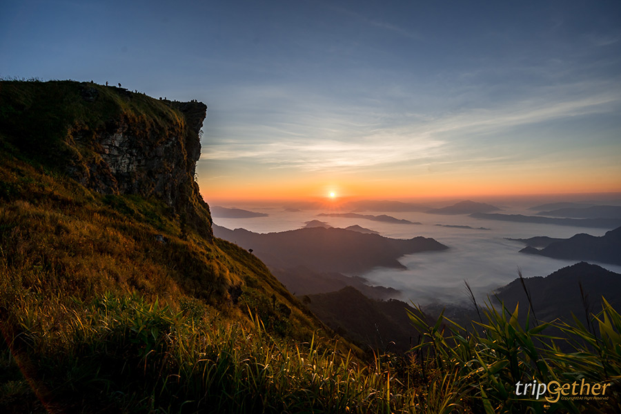 ส่วนใครอยากสัมผัสความสวยงามของภูชี้ฟ้าแบบเต็มๆ ก็ห้ามพลาดขึ้นชมแสงยามเช้าและทะเลหมอกที่ยอดดอยภูชี้ฟ้า แต่การจะเดินทางไปยังยอดดอยนั้นไม่แนะนำให้ขับรถขึ้นไปเอง ควรเหมารถชาวบ้านขึ้นไปจะดีกว่าเพื่อความปลอดภัย ซึ่งทางภูทองแคมป์ก็มีบริการรับ-ส่งขึ้นไปภูชี้ฟ้า แถมยังเดินทางไม่ไกลเพียงแค่ 3 กิโลเมตรจากที่พักเท่านั้น ถ้าใครสนใจก็สามารถติดต่อกับที่พักได้โดยตรง โดยรอบรถที่ขึ้นไปภูชี้ฟ้าเริ่มตั้งแต่ 05.00 น. รับ-ส่งราคาคนละ 60 บาท