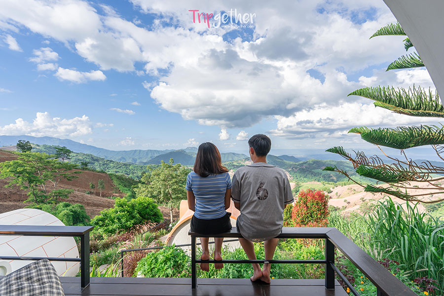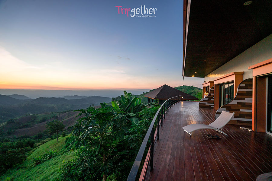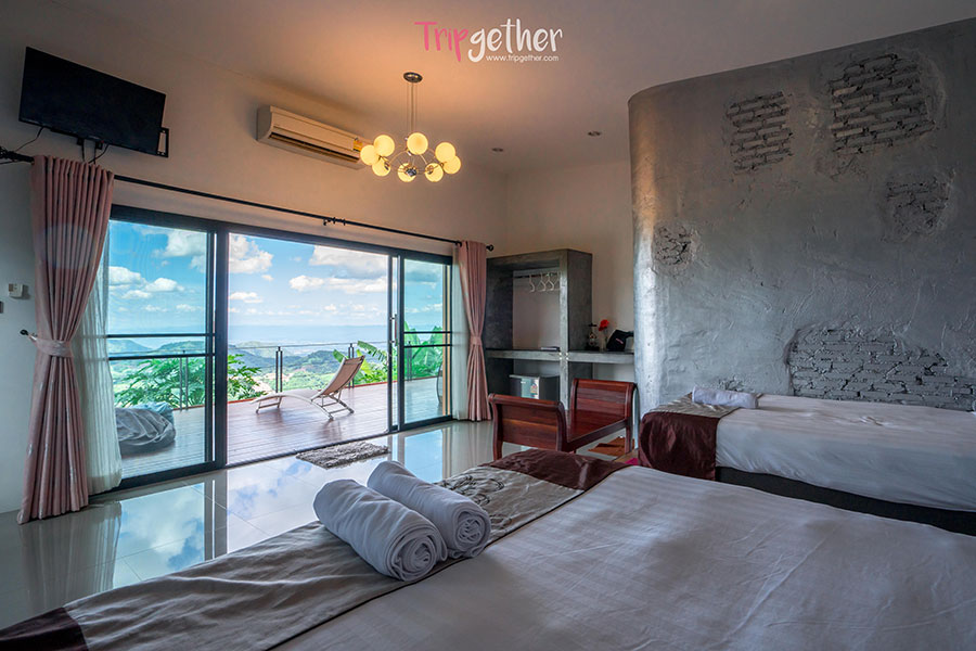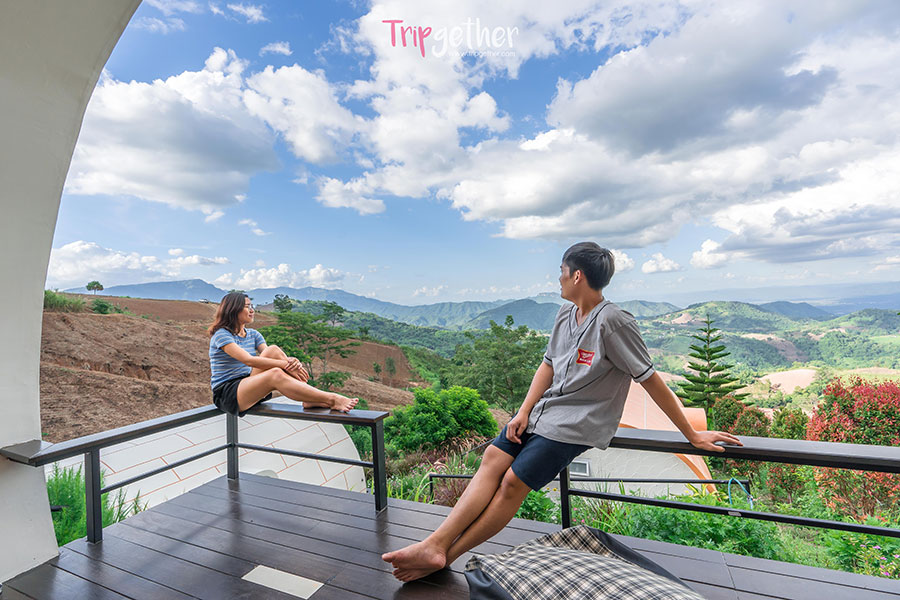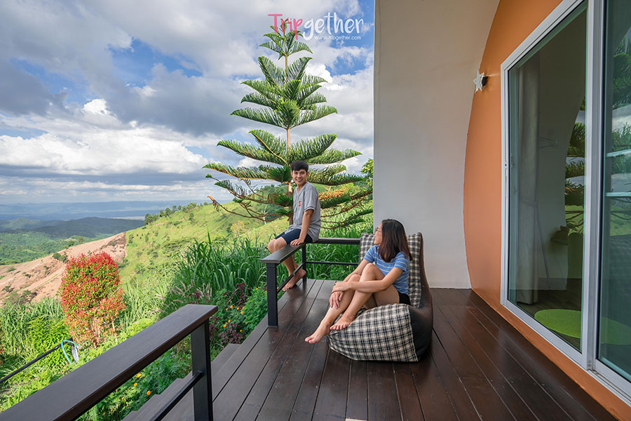ชมวิวทะเลหมอกและขุนเขากันได้แบบมุมกว้าง พร้อมซึมซับบรรยากาศสุดโรแมนติกได้จากระเบียงห้องพัก