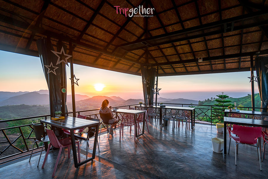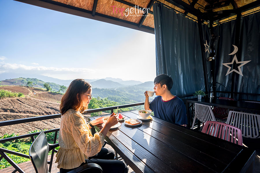 นั่งจิบกาแฟท่ามกลางทิวทัศน์เขาสวยบรรยากาศดีรับแสงแดดอุ่นๆ ยามเช้า