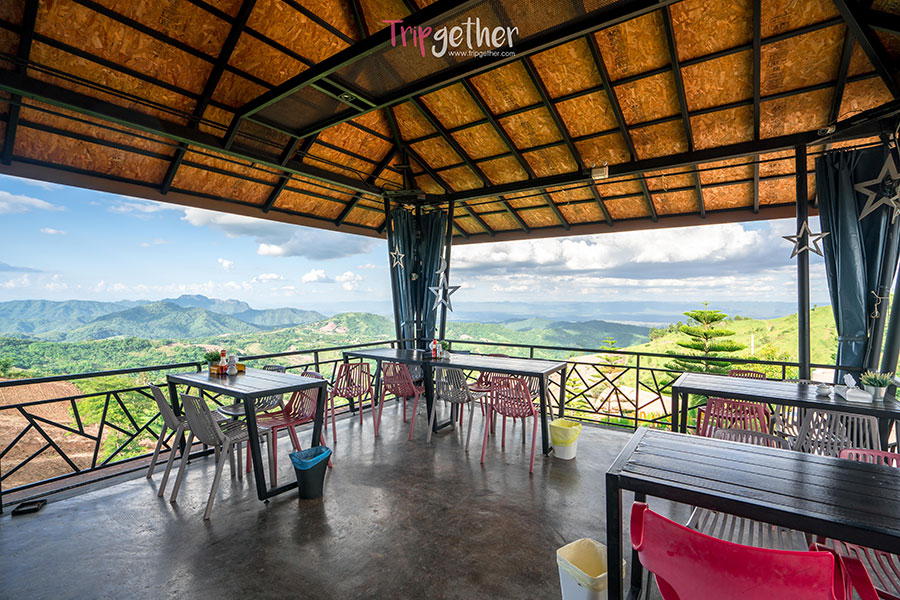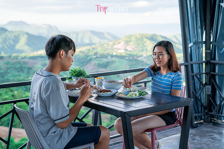 นั่งทานข้าวท่ามกลางธรรมชาติของทิวเขาที่สลับซับซ้อนกัน ได้บรรยากาศดีทีเดียว