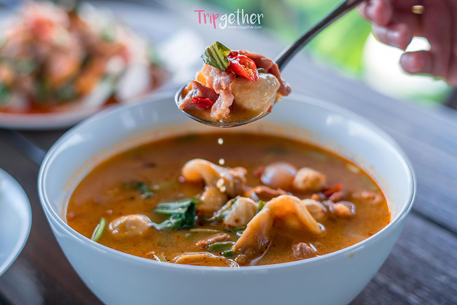 และต่อกันที่ ต้มยำน้ำข้มหมู ซดน้ำต้มยำอุ่นๆ ได้รสชาติเข้มข้นของเครื่องต้มยำแซ่บๆ เนื้อหมูเต็มคำ ราคา 100 บาท