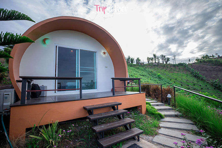 ในส่วนของห้องพักมีด้วยกัน 2 แบบ คือแบบเป็นหลังทรงแยมโรล และแบบห้องพักบนตึก เริ่มกันที่โซนตึกจะอยู่ทางซ้ายมือ มีระเบียงใหญ่และกว้างขวาง พร้อมเดย์เบดให้นอนเล่นชมวิวทะเลหมอกและพระอาทิตย์ตก