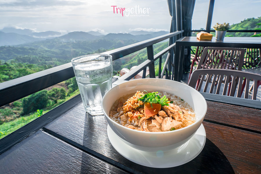 มีทั้งข้าวไก่กระเทียมและข้าวต้มไก่ครงเครื่อง พร้อมชมบรรยากาศทะเลหมอกยามเช้า ขอบอกว่าฟินสุดๆ