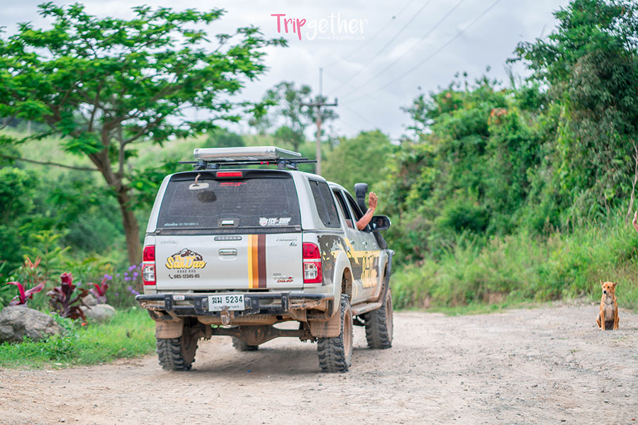 เส้นทางขาขึ้นค่อนข้างลาดชันและขรุขระ เลยต้องอาศัยรถกระบะของพี่จากทางรีสอร์ทมารับ แต่ไม่ต้องห่วงมีจุดจอดรถรับรองว่าปลอดภัย ( ถ้าขับรถตามGPS แนะนำให้เปิดแผนที่จากหน้าเพจ ไม่งั้นอาจมีหลงไปทางอื่นแบบเรา )