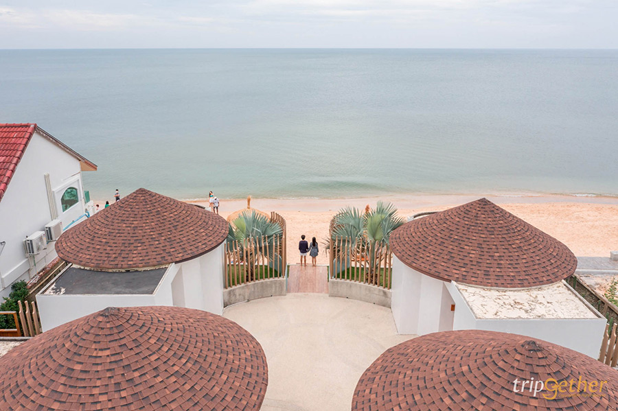 จากตัววิลล่า สามารถเดินลงชายหาดออกสู่ทะเลได้ทันที และตรงชายหาดหน้าวิลล่ายังมีซุ้มที่นั่งแบบชิคๆ ริมหาดให้ได้นั่งพักผ่อน ทำกิจกรรม หรือถ่ายรูปได้อีกด้วย