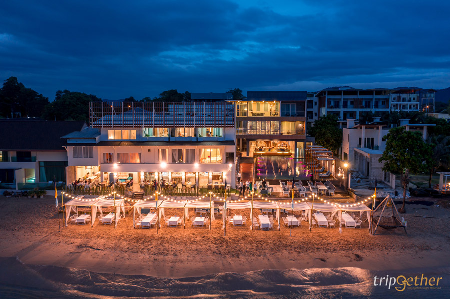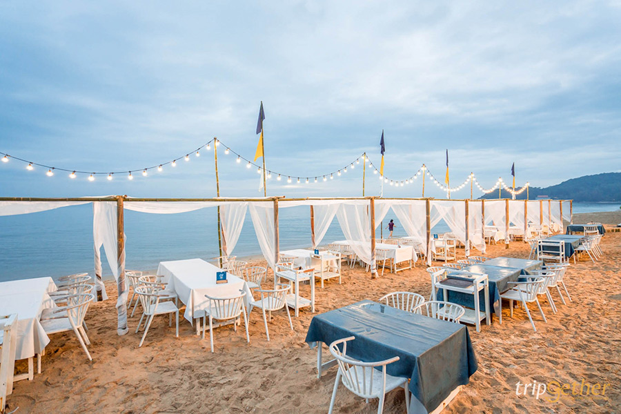 มาต่อกันที่ร้านอาหารริมทะเลของรีสอร์ท The White Box ร้านอาหารบรรยากาศดีพร้อมเสิร์ฟอาหารทะเลสดๆ รวมไปถึงเมนูอาหารไทยและนานาชาติ มีที่นั่งทั้งแบบในร้านและริมทะเล เปิดให้บริการ 11.00 – 22.00 น. ที่นั่งริมทะเลตกแต่งเป็นซุ้มสีขาว นั่งกินข้าวเย็นพร้อมฉากหลังเป็นพระอาทิตย์กำลังตกดิน บรรยากาศอบอุ่นเคล้าไปด้วยท้องฟ้าสีส้ม ให้ฟีลโรแมนติกมากๆ