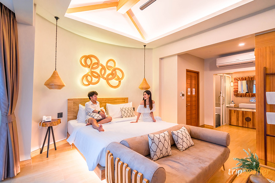 รอบนี้ มัลดีฟส์ บีช รีสอร์ท จันทบุรี กลับมาพร้อมกับโซนที่พักเปิดใหม่ มีถึง 3 ห้องด้วยกัน บอกได้เลยว่าแต่ละห้องพิเศษพรีเมียมสุดๆ เพราะภายในตกแต่งแตกต่างกัน และมีแค่แบบละห้องเท่านั้น ทุกห้องประกอบไปด้วยเฟอร์นิเจอร์และสิ่งอำนวยความสะดวกอย่างครบครัน ถ้าอยากรู้ว่าห้องแต่ละแบบเป็นยังไง วันนี้ทริปเก็ทเตอร์จะพาเพื่อนๆ เข้าไปดูในห้องทั้ง 3 แบบอย่างใกล้ชิดกันเลย มาเริ่มกันที่ห้องแรก