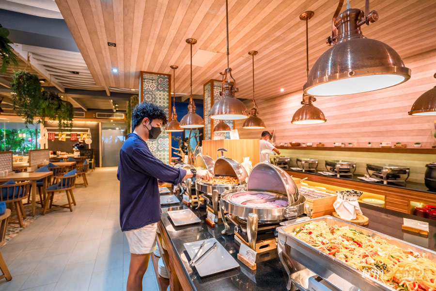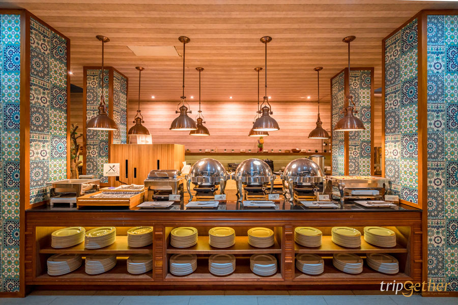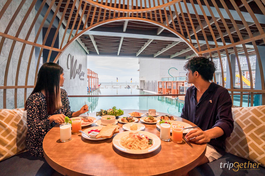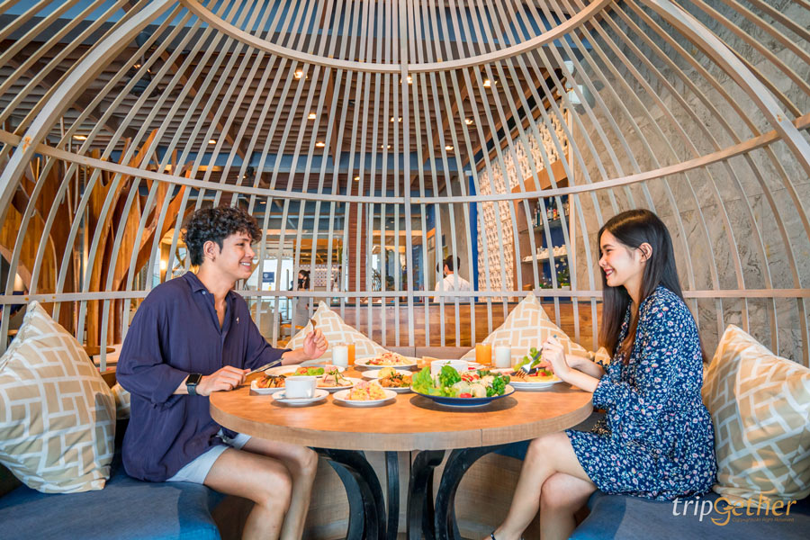 สามารถนั่งกินในห้องอาหารก็ได้ หรือจะนำมานั่งกินบริเวณ Pool Bar ตรงข้างสระว่ายน้ำ เพื่อรับลมทะเลและชื่นชมบรรยากาศในยามเช้าก็ได้เช่นกัน ในส่วนห้องอาหารจะเปิดบริการเวลา 07.00 – 10.00 น.