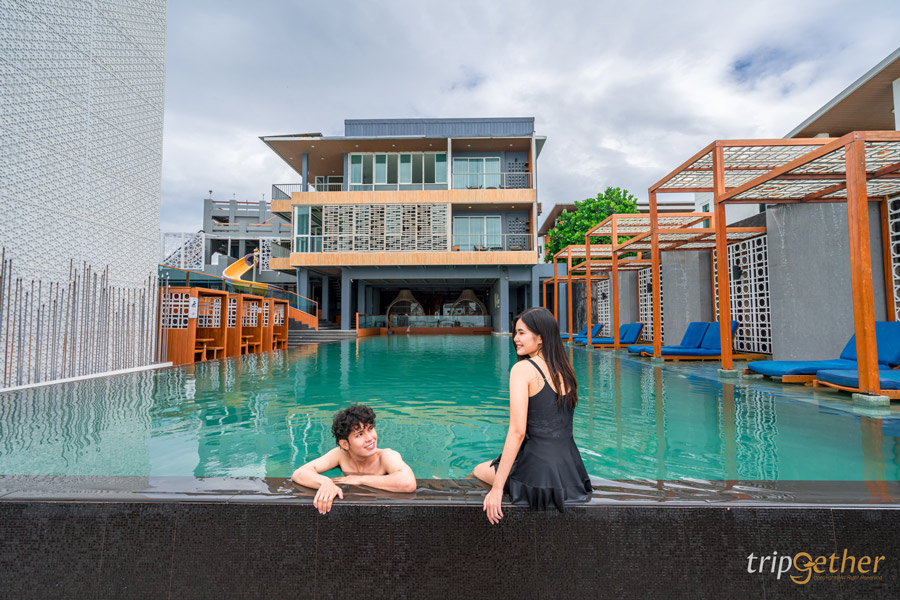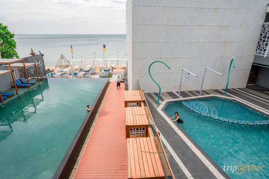 และส่วนที่พลาดไม่ได้เลยก็คือสระว่ายน้ำ รีสอร์ทมีสระว่ายน้ำทั้งหมด 2 สระด้วยกัน แบบแรกคือ Infinity Pool Edge สระว่ายน้ำแบบไร้ขอบ ให้ความรู้สึกเหมือนได้เชื่อมต่อกับทะเล ข้างๆ สระมีเก้าอี้ให้นั่งพักหลังจากว่ายน้ำมาเหนื่อยๆ หรือจะใช้เป็นที่นั่งพูดคุยแบบชิลล์ๆ ข้างสระว่ายน้ำก็ได้นะ สระว่ายน้ำทั้ง 2 สระและ Pool Bar เปิดให้บริการเวลา 08.00 – 20.00 น.
