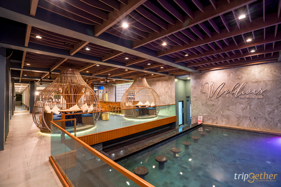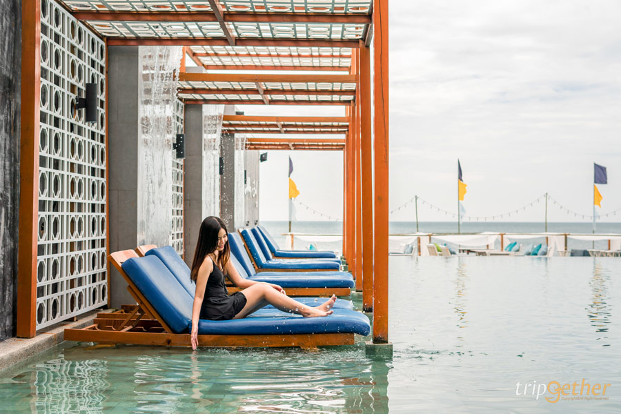 ถัดมาคือ Pool Bar เป็นบาร์ริมสระว่ายน้ำ มีโต๊ะเก้าอี้ให้นั่งชิลล์ หรือจะสั่งของมากินเล่นที่นี่ก็ได้เหมือนกัน นั่งจิบค็อกเทลไป ดูวิวสระว่ายน้ำพร้อมวิวทะเลให้ความรู้สึกผ่อนคลายสุดๆ