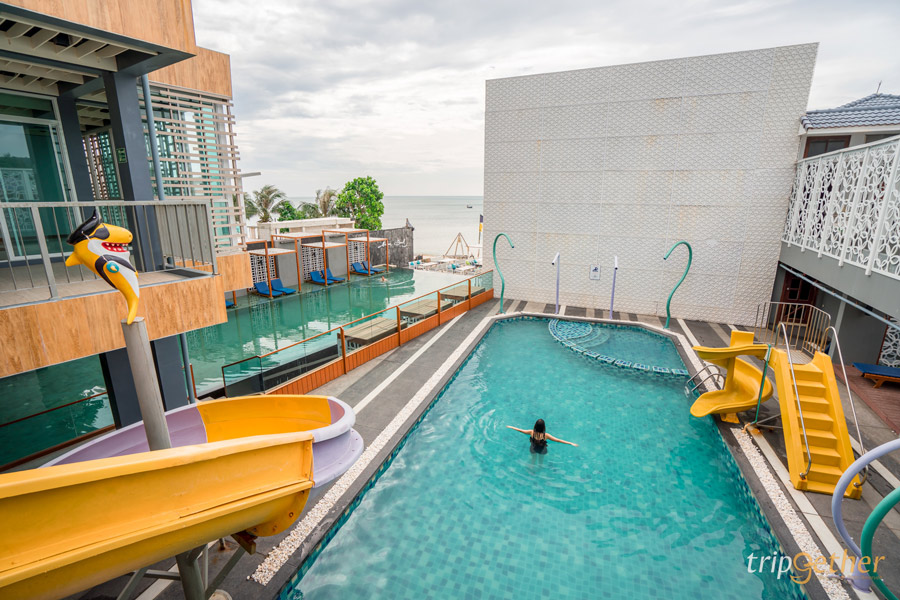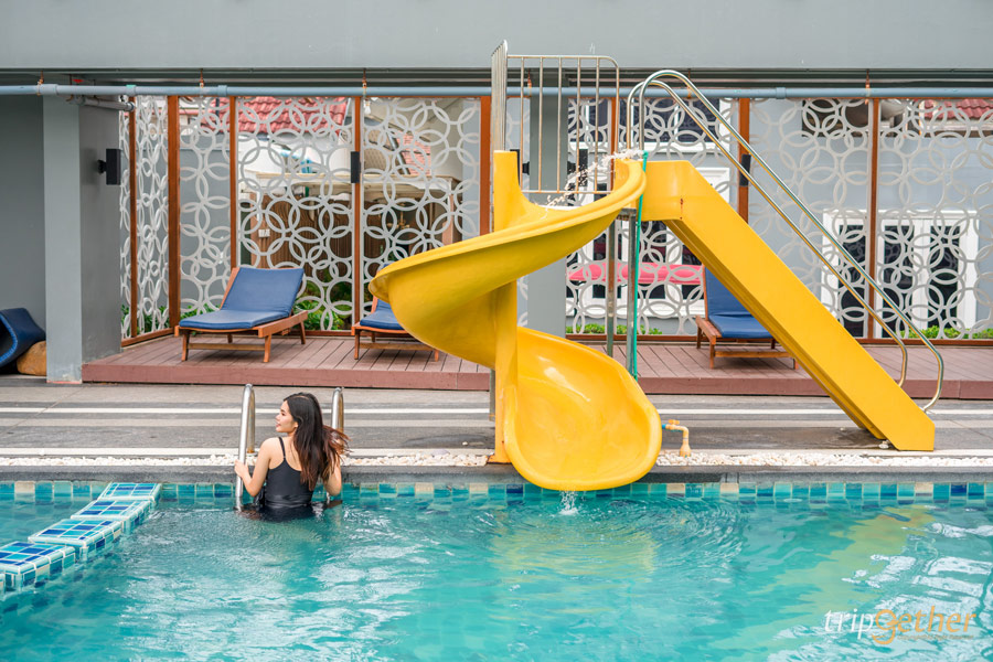 ส่วนสระว่ายน้ำอีกสระเป็น Kid’s Pool สระว่ายน้ำสำหรับเด็ก ถ้าครอบครัวพาน้องๆ หนูๆ มาด้วยก็สามารถมาเล่นน้ำกันได้ที่สระนี้เลย โดยจะมีสไลเดอร์เพิ่มความสนุกสนานและเครื่องเล่นสำหรับเด็กอีกด้วย นอกจากนี้ยังมีโซนสระเล็กสำหรับเด็กที่มีความลึกเพียง 50 เซนติเมตรเท่านั้น