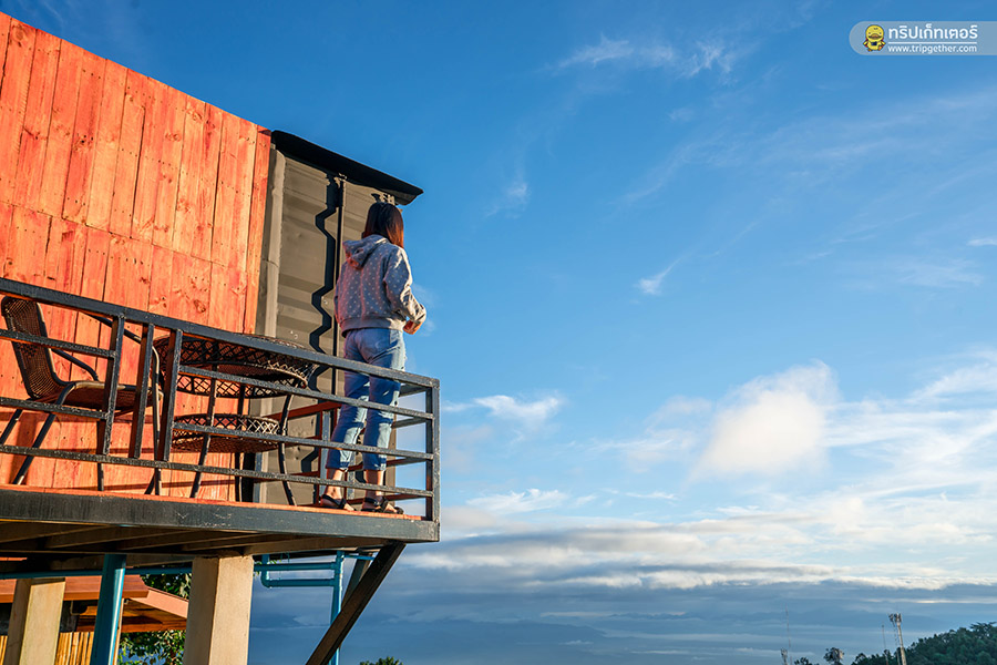 มาเริ่มกันที่ บ้านคอนเทนเนอร์ บ้านพักสไตล์สุดชิคที่ดัดแปลงมาจากตู้คอนเทนเนอร์และยกตัวบ้านสูงจากพื้นดิน ภายนอกถูกออกแบบโดยใช้ไม้ตกแต่งตัวตู้คอนเทนเนอร์ เพื่อเพิ่มความความเท่จากลายไม้ดิบๆ สีน้ำตาลของตัวบ้านคอนเทนเนอร์ถูกตัดกับสีดำของโครงเหล็กราวระเบียงและส่วนที่โชว์ความเป็นตู้คอนเทนเนอร์ ให้ฟีลลิ่งของความเป็นอินดัสเทรียลเท่ๆ ที่ตั้งอยู่เหนือยอดดอย