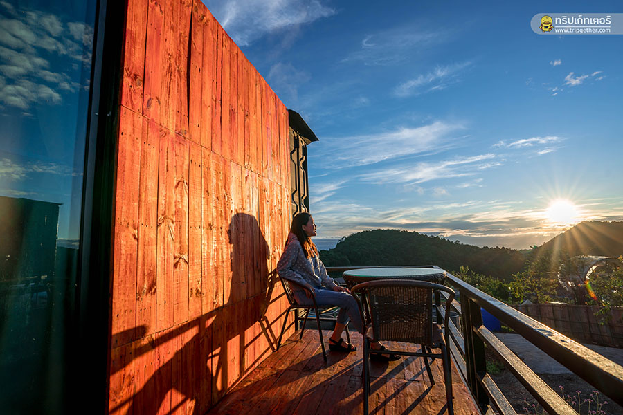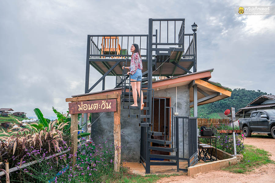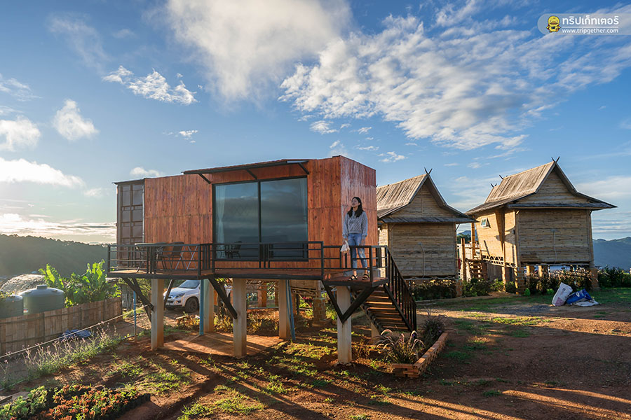 สำหรับตัวห้องพักของ ม่อนตะวัน ก็มีให้เลือกทั้งแบบ บ้านลอฟท์ 2 หลัง บ้านคอนเทนเนอร์ 2 หลัง เรือนไม้ไผ่ 3 หลัง และเต็นท์กระโจม 3 หลัง แต่ละหลังยังถูกออกแบบให้หันหน้าเข้าสู่วิวดอยที่อุดมสมบูรณ์ไปด้วยป่าสีเขียวขจีและแปลงผักขั้นบันได ให้เพื่อนได้รับลมหนาวและไอหมอกกันแบบฟินๆ