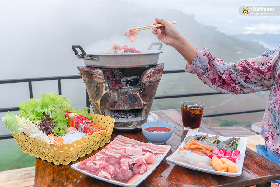 ตกเย็นอากาศหนาวๆ ก็คงหนีไม่พ้นการปิ้งย่างหมูกระทะกันแบบฟินๆ บนชั้นดาดฟ้า เรียกได้ว่ากินหมูกระทะพร้อมชมวิวแบบ 360 องศา