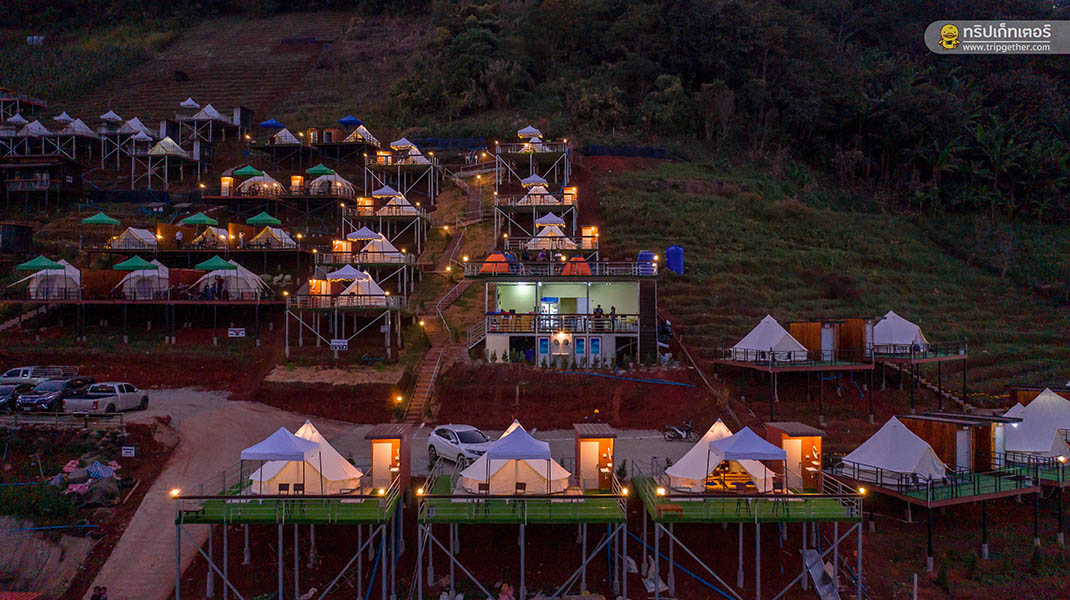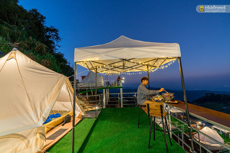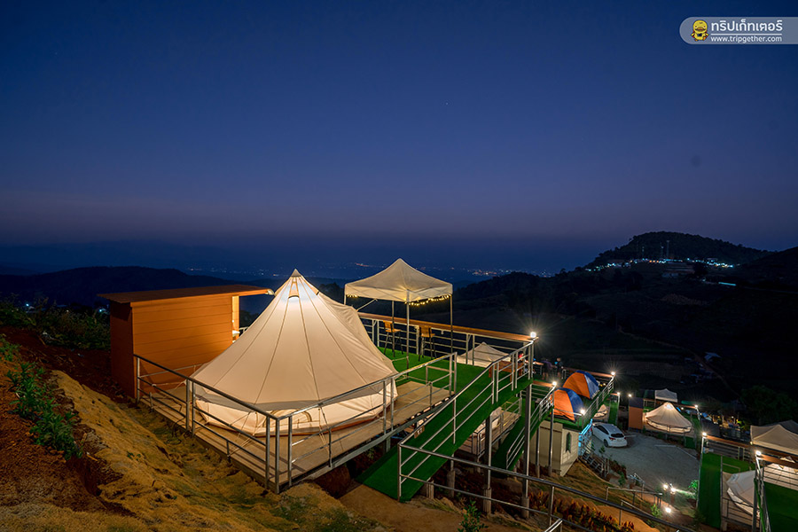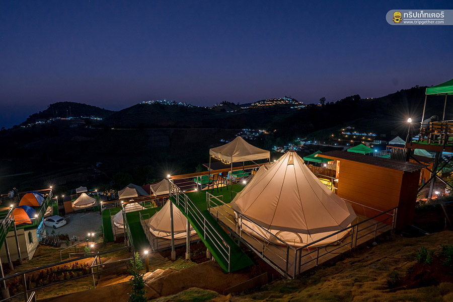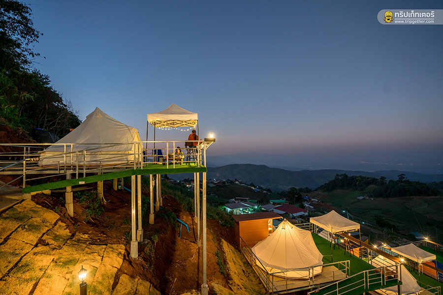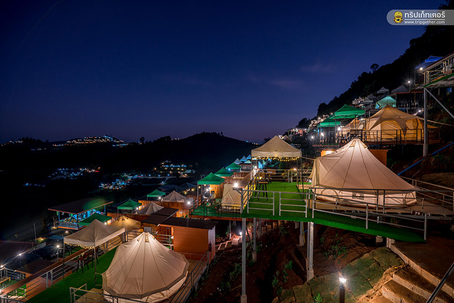 บรรยากาศยามค่ำคืนยังได้เห็นวิวแสงไฟจากที่พักอื่นๆ ระยิบระยับทั่วทั้งดอย