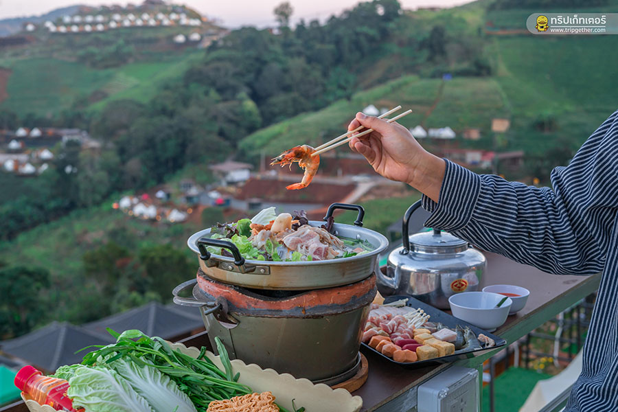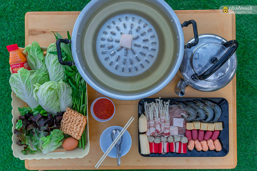 มานอนม่อนแจ่มทั้งทีไม่กินหมูกระทะหน้าเต็นท์ก็เหมือนยังมาไม่ถึง ม่อนผาสุข ยังมีบริการหมูกระทะชุดละ 450 บาท ที่จัดเต็มทั้งเนื้อหมู กุ้ง ไส้กรอก และผักสดๆ ที่เสิร์ฟมาให้กินกันถึงหน้าเต็นท์