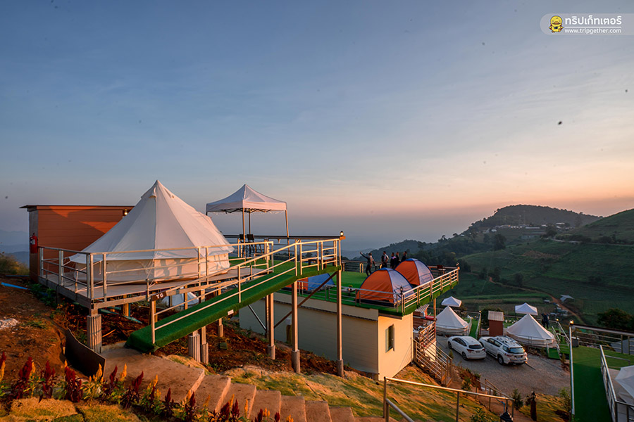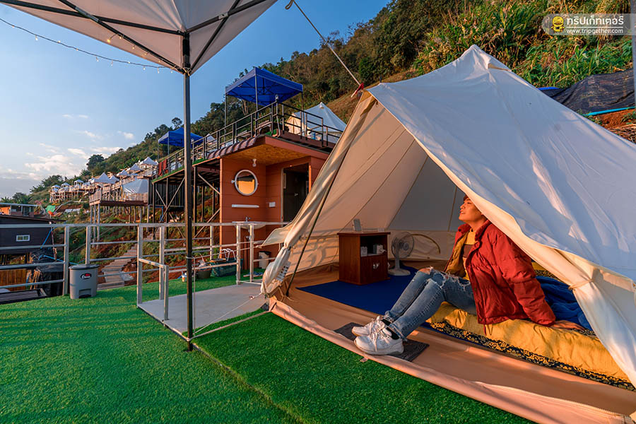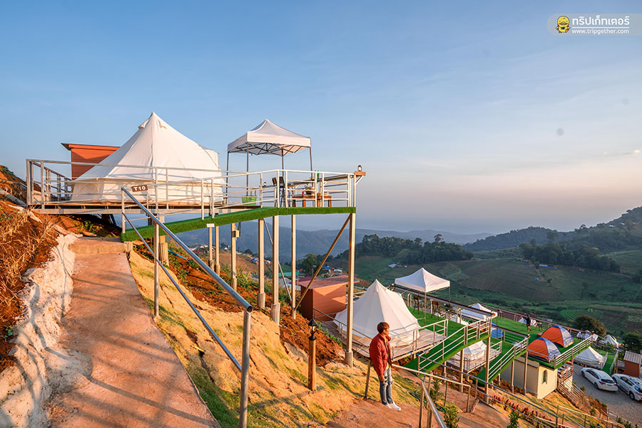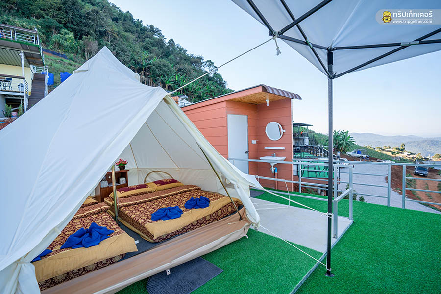มาเริ่มต้นกันที่ เต็นท์กระโจมขาว เต็นท์กระโจมสุดชิคที่ตั้งหันหน้าออกสู่วิวภูเขาทุกหลัง และยังออกแบบโครงเหล็กที่ได้รับมาตรฐานสำหรับตั้งตัวเต็นท์ซึ่งรับรองได้ว่าปลอดภัยตลอดการเข้าพักผ่อนอย่างแน่นอน