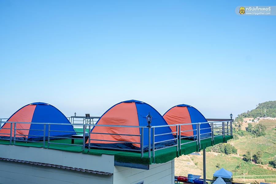 สำหรับใครที่อยากเปลี่ยนบรรยากาศมาท้าลมหนาวแบบฟินๆ ม่อนผาสุข ยังมี เต็นท์ธรรมดา ให้เลือกอีกด้วย ตัวเต็นท์ตั้งอยู่บนดาดฟ้าร้านอาหารของที่พักซึ่งปูด้วยหญ้าเทียม และมีพื้นที่กว้างขวางสามารถชมวิวได้แบบ 360 องศาด้วยนะ