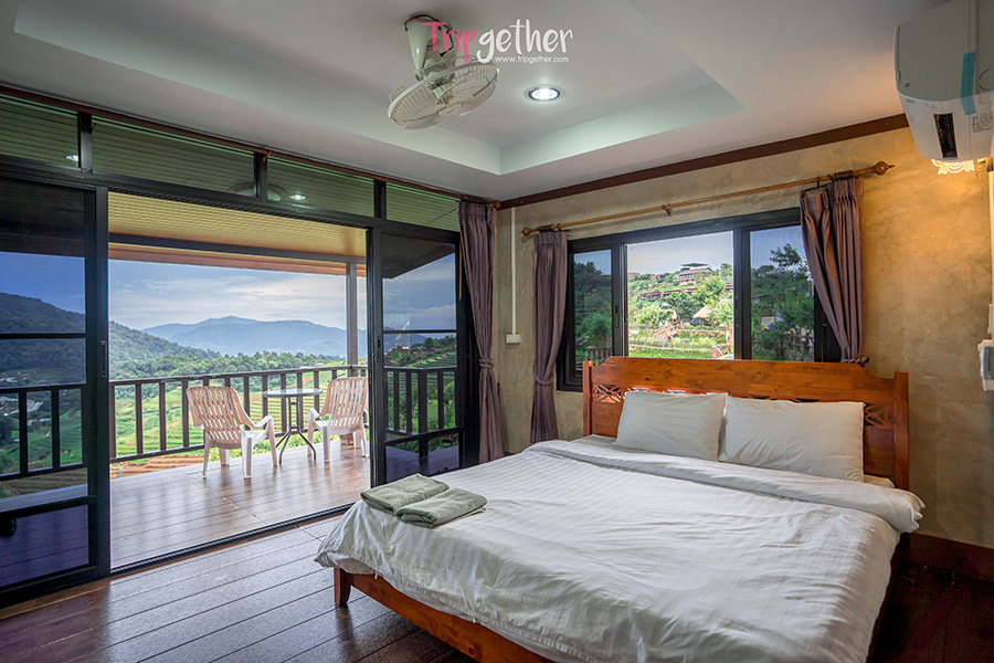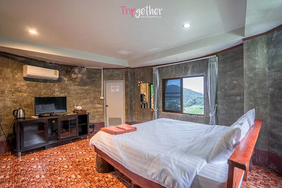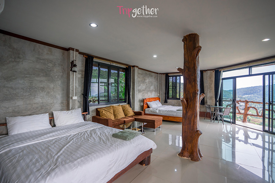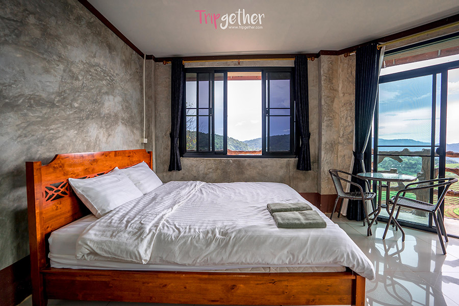 ภายในห้องพักตกแต่งอย่างเรียบง่าย และครบครันด้วยสิ่งอำนวยความสะดวก มีพื้นที่กว้างขวาง แบ่งโซนนั่งเล่นและพักผ่อนได้เป็นอย่างดี มีระเบียงส่วนตัวที่สามารถเปิดประตูออกมาดูวิวสวยๆ ได้เลย