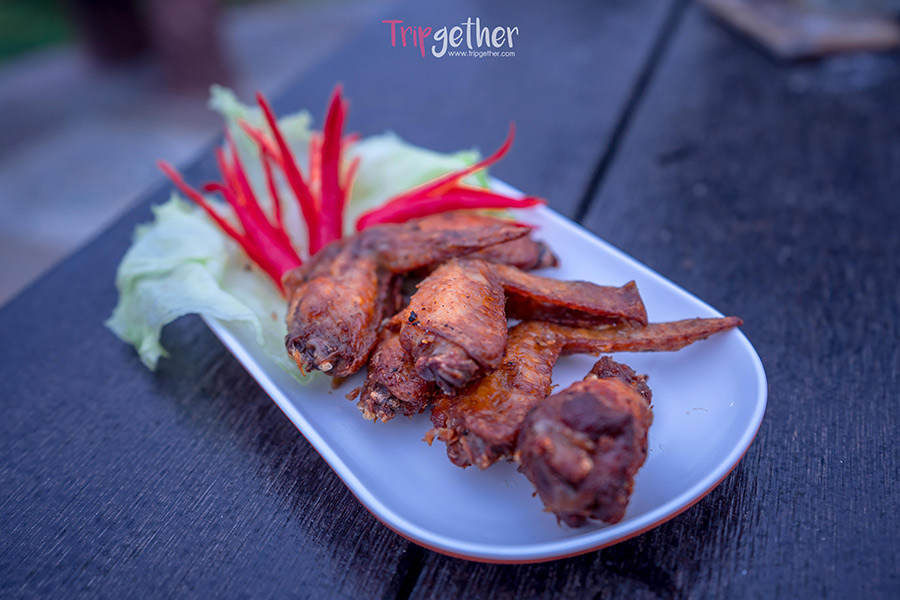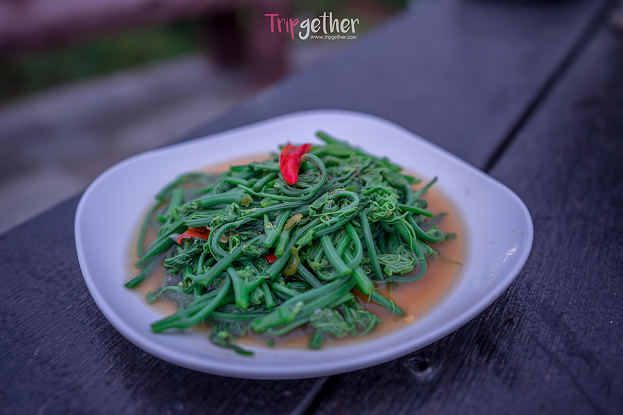 ซึ่งในส่วนของเมนูอาหารทางรีสอร์ทก็มีให้เลือกสั่งกันหลากหลายเมนู โดยมีเมนูแนะนำเป็น ชุดน้ำพริกอ่องเสิร์ฟพร้อมผักสดและแคปหมู ผัดยอดฟักแม้ว ผัดกระหล่ำปลีน้ำปลา ปีกไก่ทอดน้ำปลา และข้าวผัดกุนเชียงจานใหญ่