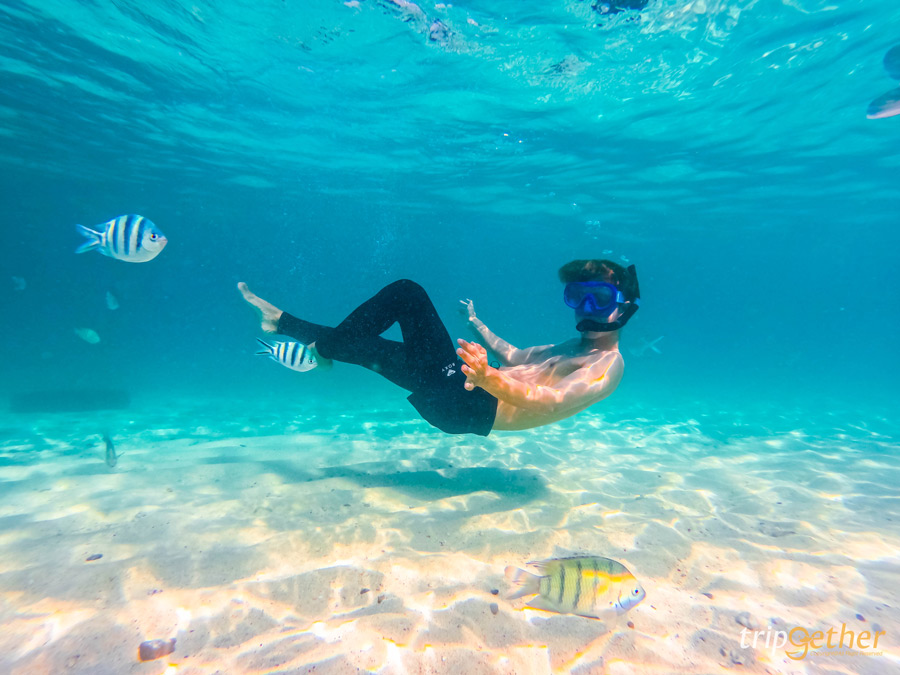 ใครว่ายน้ำไม่แข็งก็ไม่ต้องกลัวไป เพราะมีเจ้าหน้าที่จากทางที่พักไปกับเราด้วย โดยเจ้าหน้าที่จะคอยดูแลตั้งแต่ขึ้นเรือจนไปถึงตอนดำน้ำเลย รวมถึงมีบริการถ่ายรูปให้รัวๆ ทั้งบนเรือและใต้น้ำกันจนหนำใจ จบทริปรับรองว่าได้รูปสวยๆ กลับไปเพียบ