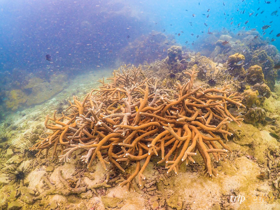 จุดแรกที่เราจะดำน้ำกันเป็นจุดดำน้ำตื้น ก่อนลงไปดำน้ำ เจ้าหน้าที่จะสอนวิธีการใช้อุปกรณ์สำหรับดำน้ำอย่างถูกต้อง