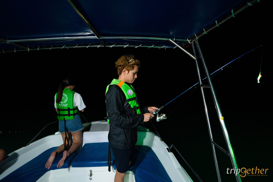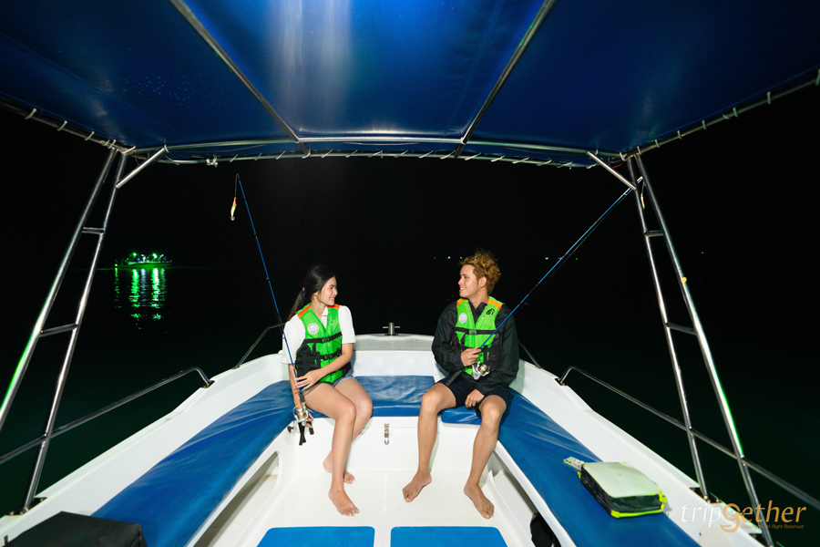 มาต่อกันที่กิจกรรมตกหมึกทะเล เป็นบริการของทางที่พักเช่นกัน ค่าบริการจะราคาเท่ากับดำน้ำเลย เราเอาบรรยากาศตกหมึกตอนกลางคืนมาฝาก บรรยากาศตอนกลางคืน มองเห็นพระจันทร์เต็มดวง อากาศถ่ายเท มีลมพัดตลอดเวลา นั่งตกหมึกกันได้ชิลล์ๆ เลย นอกจากนี้ยังสามารถนั่งตกหมึกหน้าที่พักตรงสะพานไม้ได้นะ ค่าบริการคันเบ็ดตกปลา คันละ 100 บาท