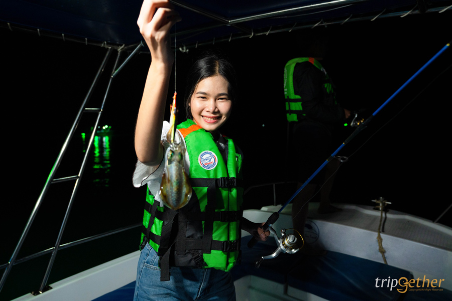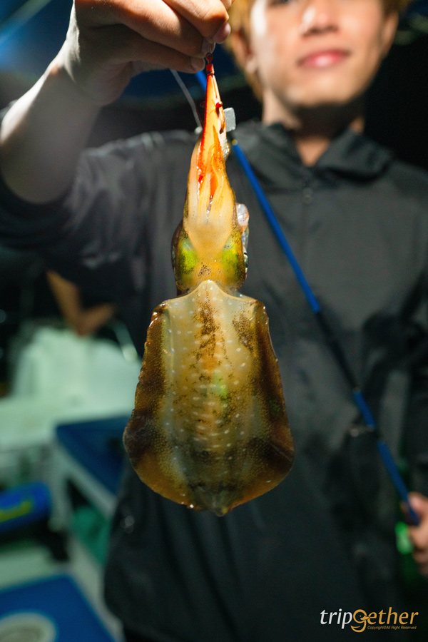 ตกได้แล้วก็เอามาซาซิมิหมึกกันสดๆ กินกับน้ำจิ้มซีฟู้ด รสชาติเด็ดอย่าบอกใคร