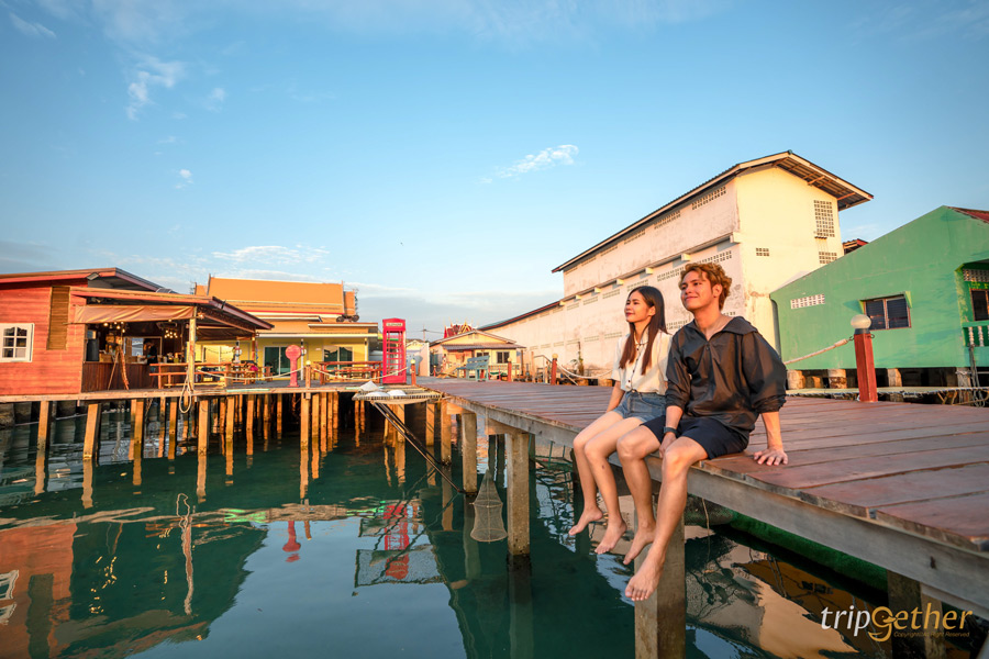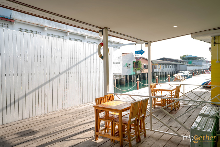 บริเวณที่พักเป็นสะพานไม้ มีเก้าอี้และมุมพักผ่อนหย่อนใจสำหรับคนเข้าพัก มีมุมให้ถ่ายรูปสวยๆ เป็นสะพานไม้ที่ยื่นออกไปบนทะเล