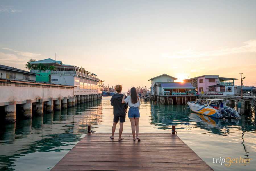 มาถึงอ่าวแสมสารแล้ว แวะถ่ายรูปกันที่สะพานสักหน่อย น้ำใสมากจนมองเห็นปลาว่ายน้ำไปมาเลย