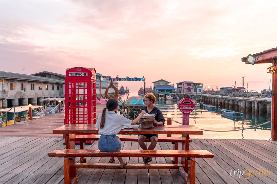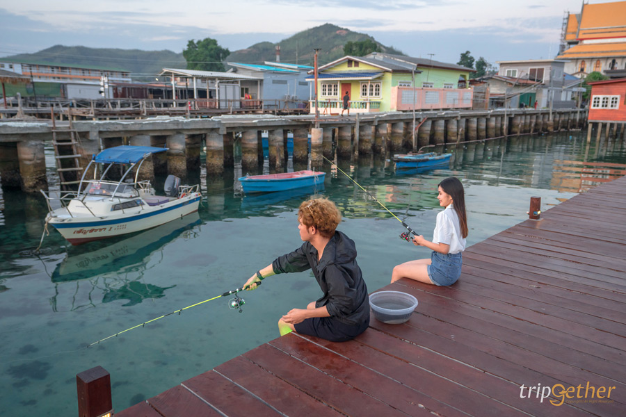 นั่งตกปลากันที่สะพานไม้หน้าที่พักได้เลย