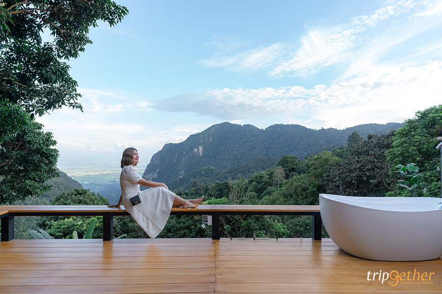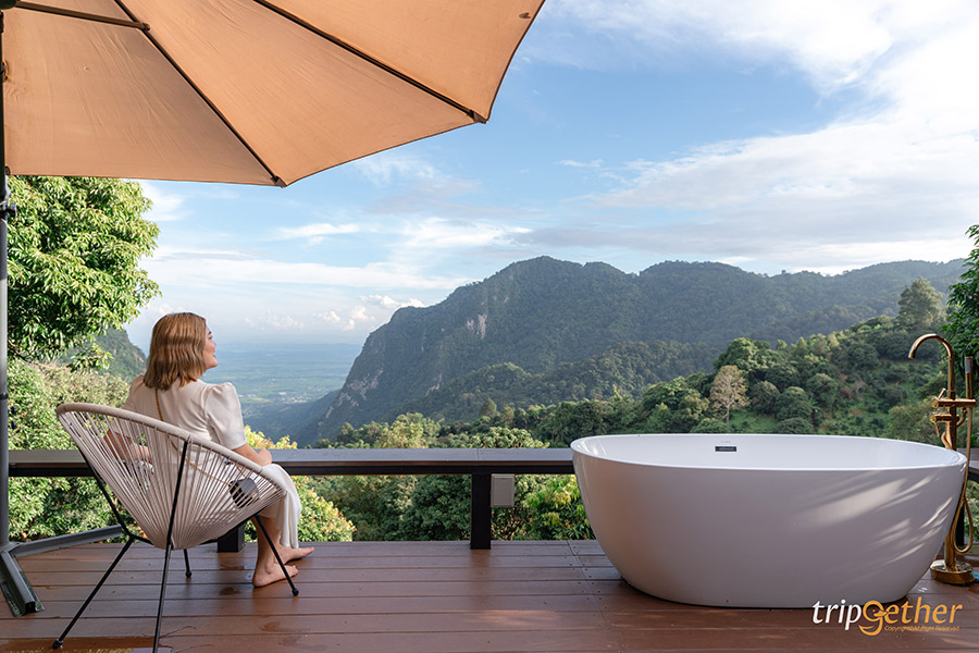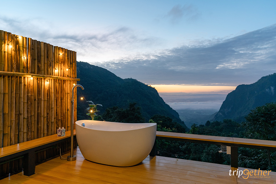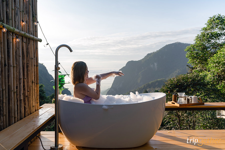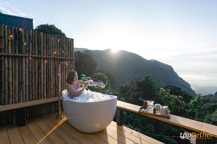 ไฮไลท์เด็ดที่สายคอนเทนต์ต้องจัดก็คือการใส่ชุดว่ายน้ำแช่อ่างจากกุชชี่ ให้ได้นอนแช่น้ำถ่ายรูปปังๆ อัปลงโซเชียล แถมวิวรอบๆ สวยมาก มาแล้วต้องถ่ายรูปให้ครบทุกมุมนะ และแนะนำให้ตื่นเช้ามาลงอ่าง แสงสวยมาก ได้ฉากหลังเป็นพระอาทิตย์ขึ้นด้วย