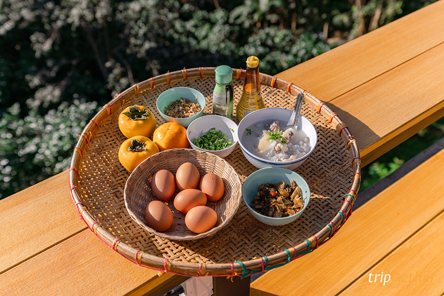 ตื่นมาอากาศยังหนาวอยู่ ก็มาอุ่นท้องด้วยมื้อเช้าอย่างข้าวต้มร้อนๆ พร้อมไข่ต้ม และลูกพลับ