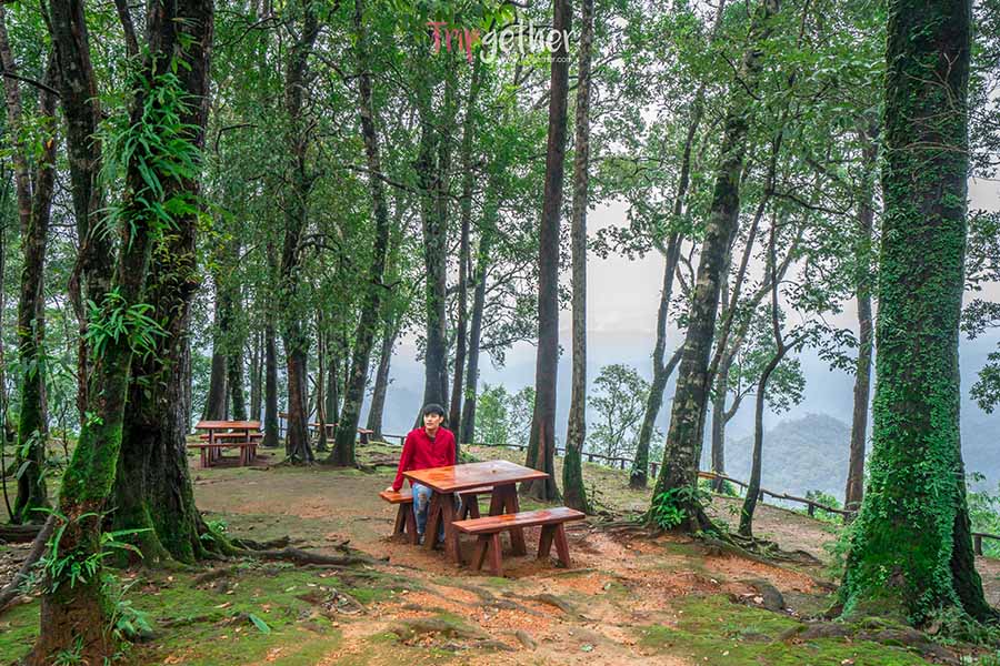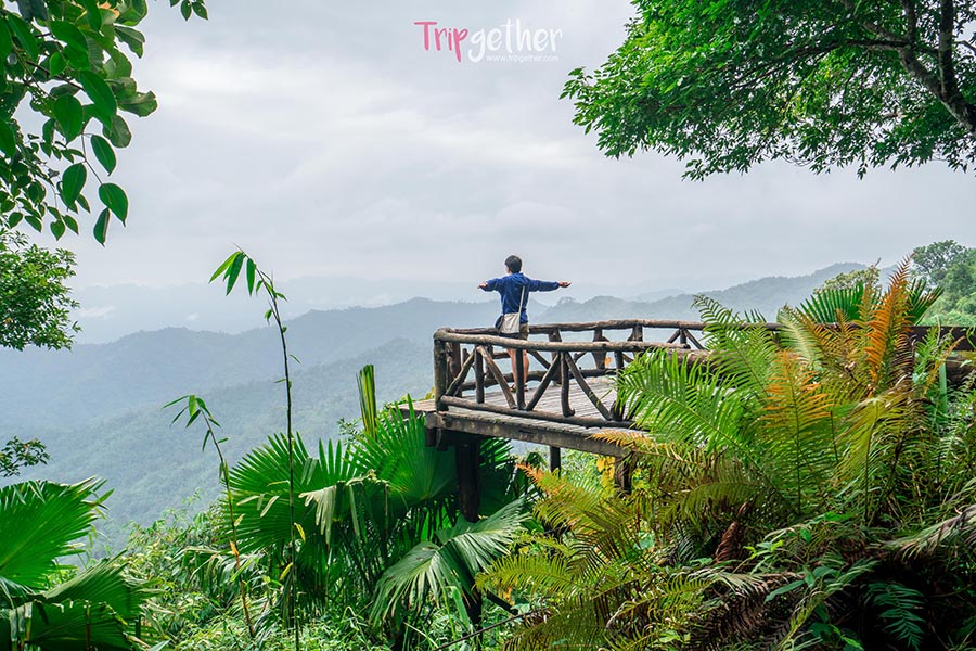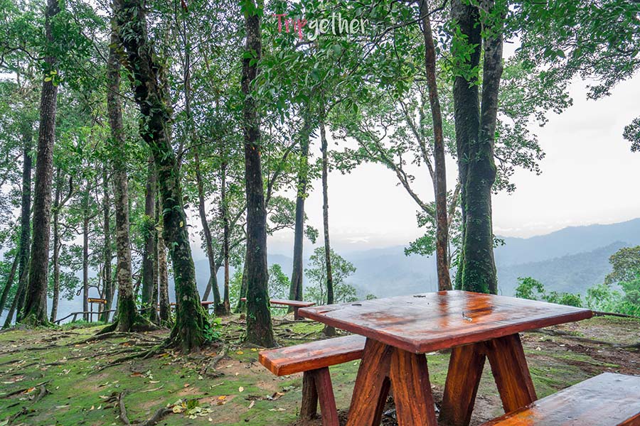 โดยจุดชมวิวจะเป็นระเบียงไม้แข็งแรง ยื่นออกไปจากเขา มีวิวเขาช้างเผือกและทะเลหมอกให้ดูกันแบบ 180 องศา รับรองว่าได้ภาพสวยไปอวดโซเชียลกันมากมาย