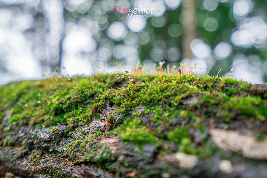ระหว่างทางเดินก็จะเจอมอสสีเขียวๆ เกาะอยู่ตามทางเดินและต้นไม้ แต่ต้องระวังลื่นกันด้วยนะ