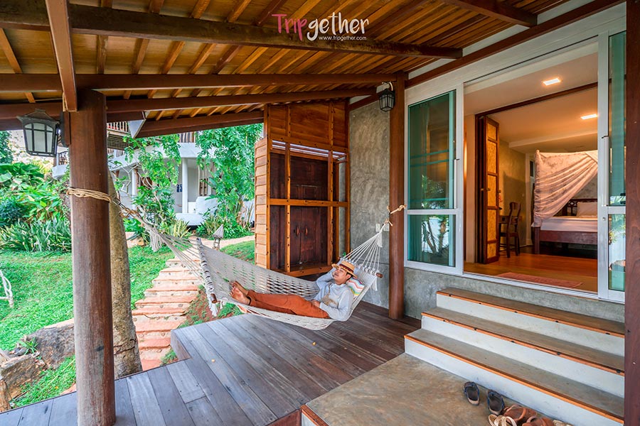 นอกจากนี้ยังมีระเบียงกว้าง พร้อมเปล่สุดชิลล์ให้คุณได้มานอนเล่นชมวิวทะเลได้แบบเพลินๆ