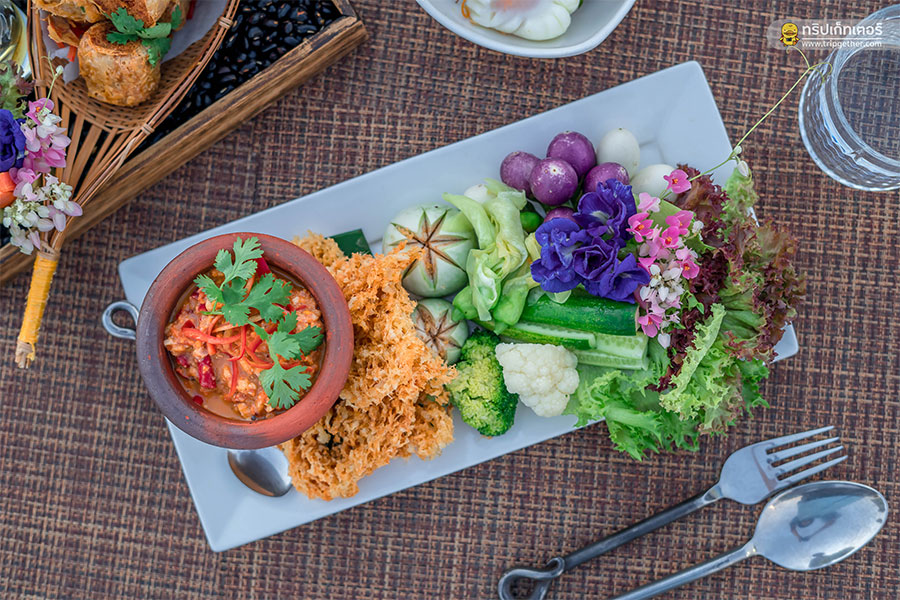 น้ำพริกมันปู เสิร์ฟพร้อมผักสด ราคา 320++